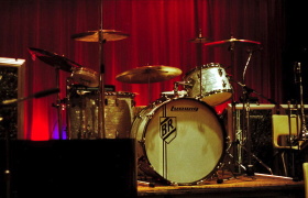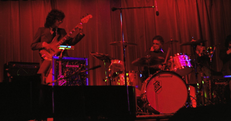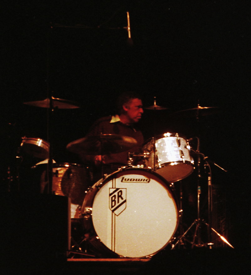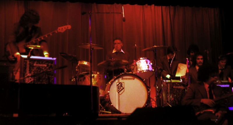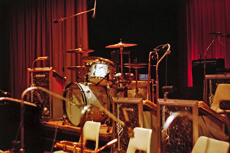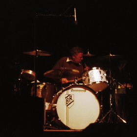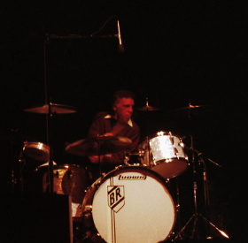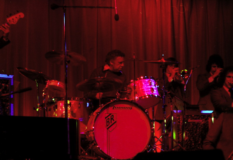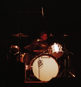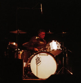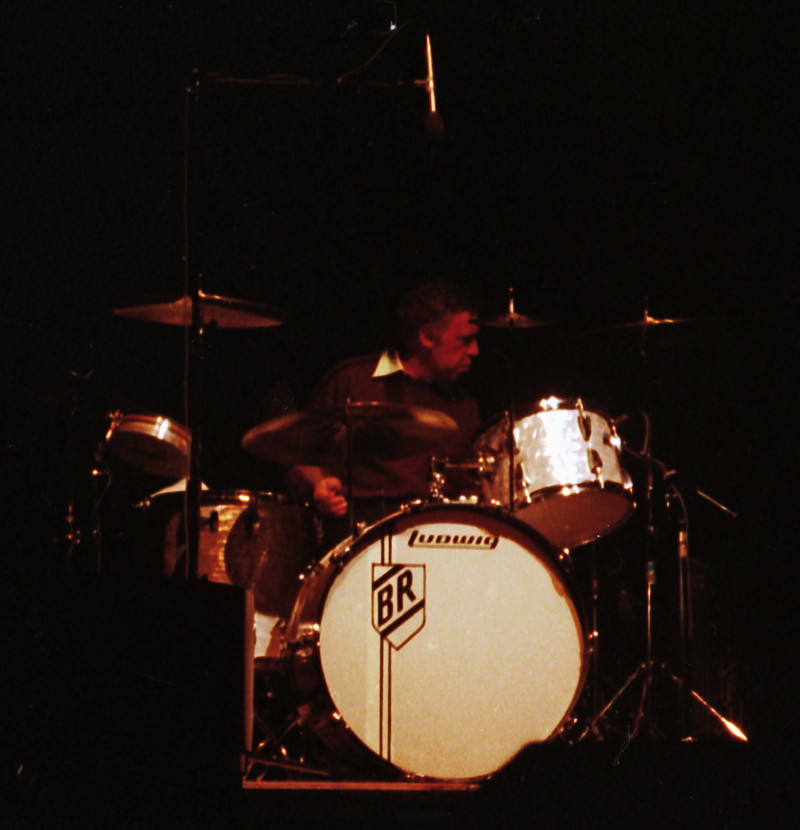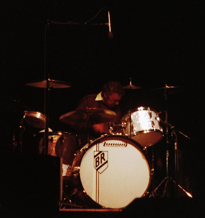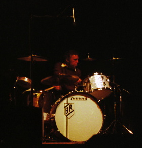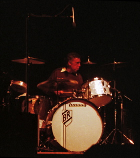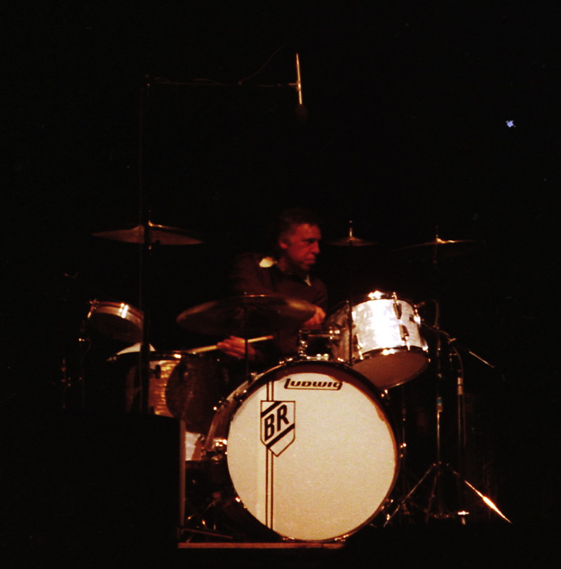 I'm not sure, but I think this may be a rare opportunity for all of us BR fans to get quite such a good look at BR's kit at the time; I have not seen any other photos even remotely like this one yet. One could almost go around and sit down at those drums!