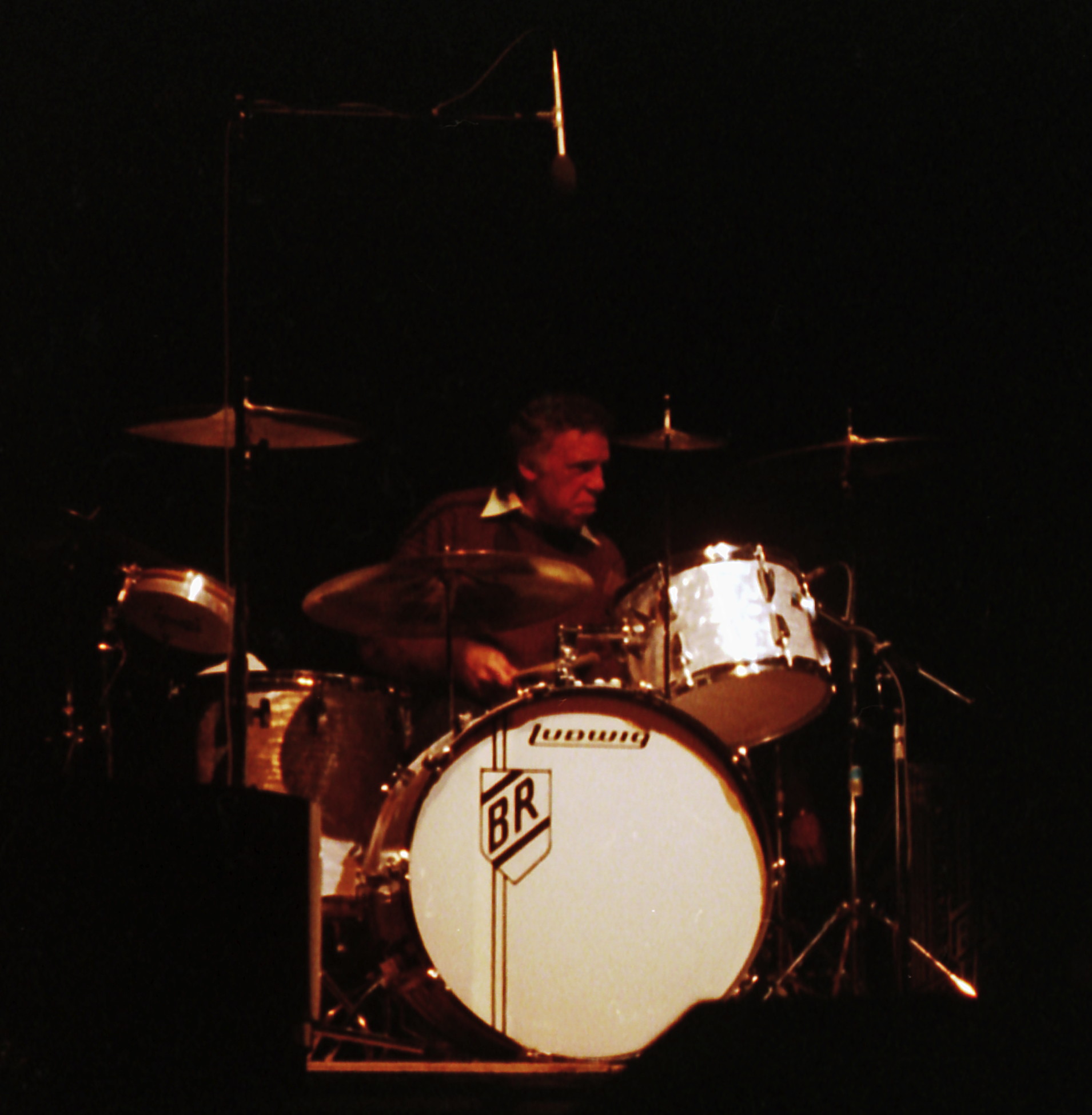 I’m gratified to be able to share yet another night of the fabulous Buddy Rich band in performance in front of a justifiably amazed and gratified full house of concert goers. I think it is clearly a testament to Buddy’s genius and indefatigable musical integrity that one can come across so many completely previously unknown and inconsequential recorded performances of him and still, ALWAYS, hear a multitude of consistently ridiculous levels of superb music being played. I mean, the known and unknown recordings keep pointing out that the man pulled this stuff off night after night thousands of times!By the way, whoever “tensioned” Buddy’s drums that evening was completely spot on! (Remember the distinction Buddy made between tensioning and tuning, folks.)