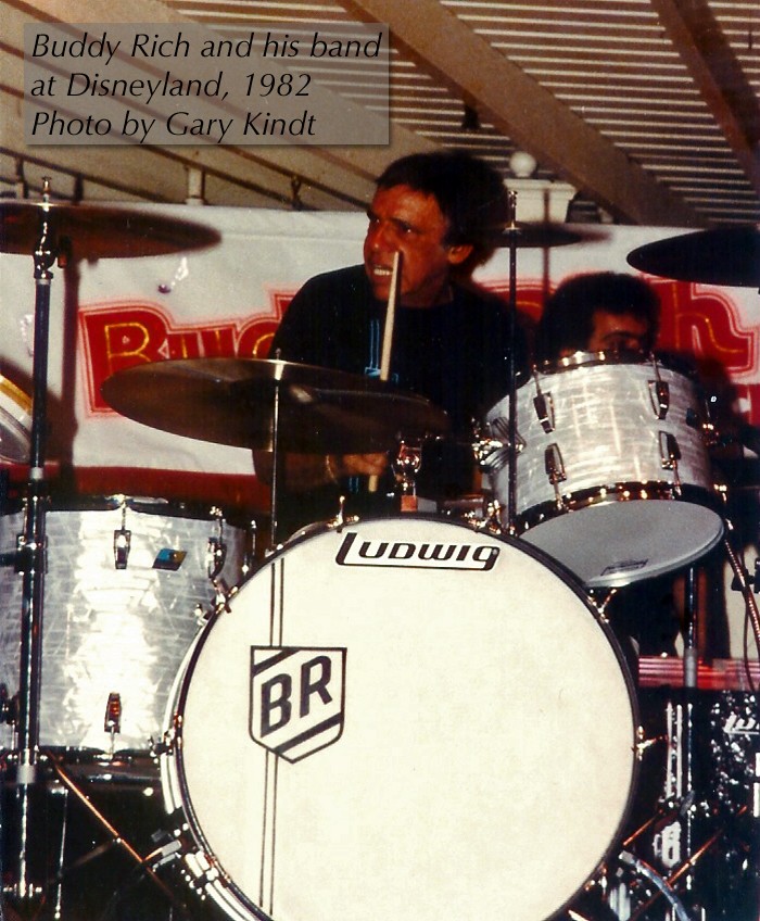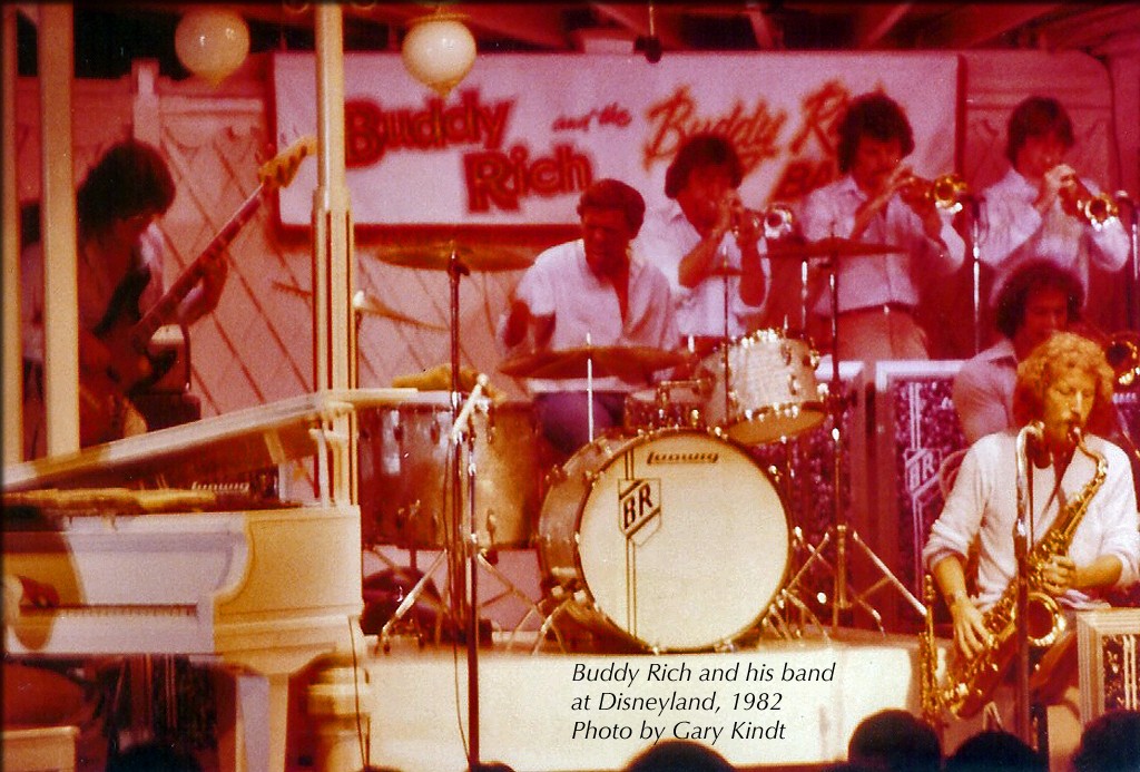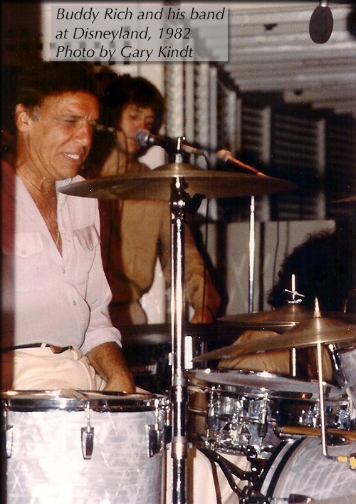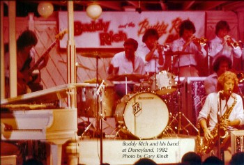 Please post these photos. They were taken at Disneyland in 1982 in September. Not a spectacular band but Buddy was at his usual greatness. At Disneyland, you could stand at Buddy's right about 15 ft. away and be able to view both hands and feet. The sound of that bass drum was like a cannon going off in the Carnation Plaza Gardens where the stage was. Also saw Cathy Rich sing with the band there.